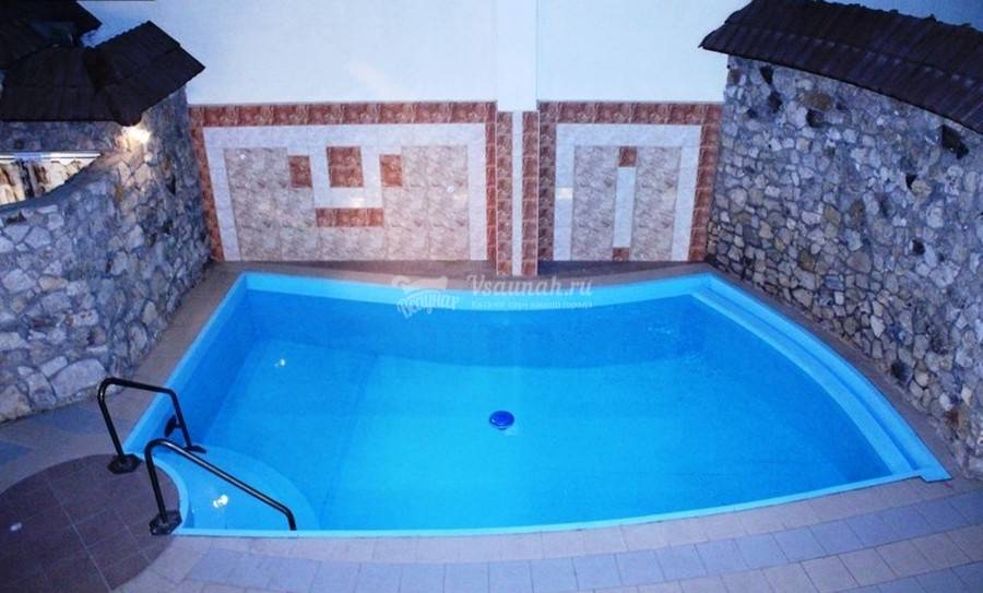 ?Большой бассейн размером 6х4 метра, в котором можно вдоволь насладиться водными процедурами после парной;